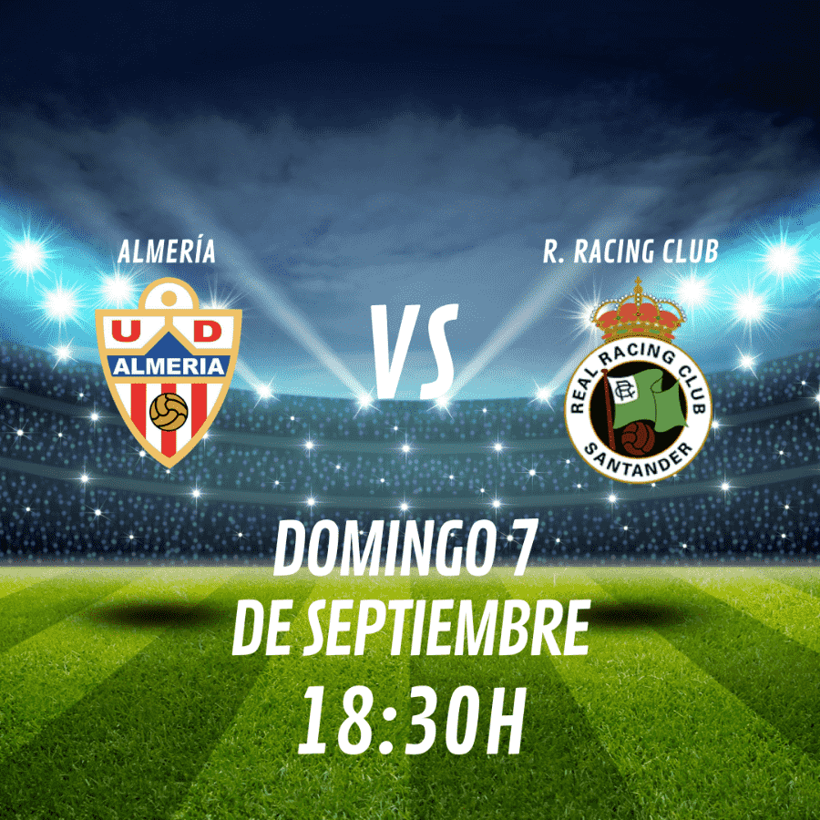 07Sep18:30 pmUD ALMERÍA VS R. RACING CLUBPartido de Fútbol