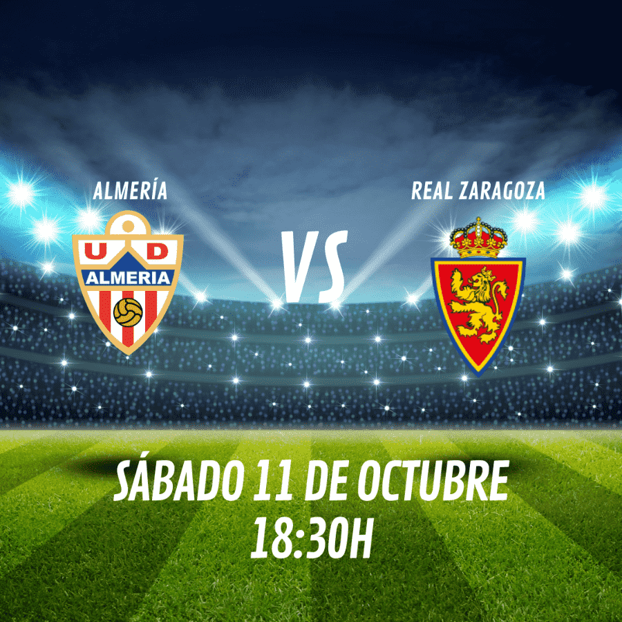 11Oct18:30 pmUD ALMERÍA VS REAL ZARAGOZAPartido de futbol