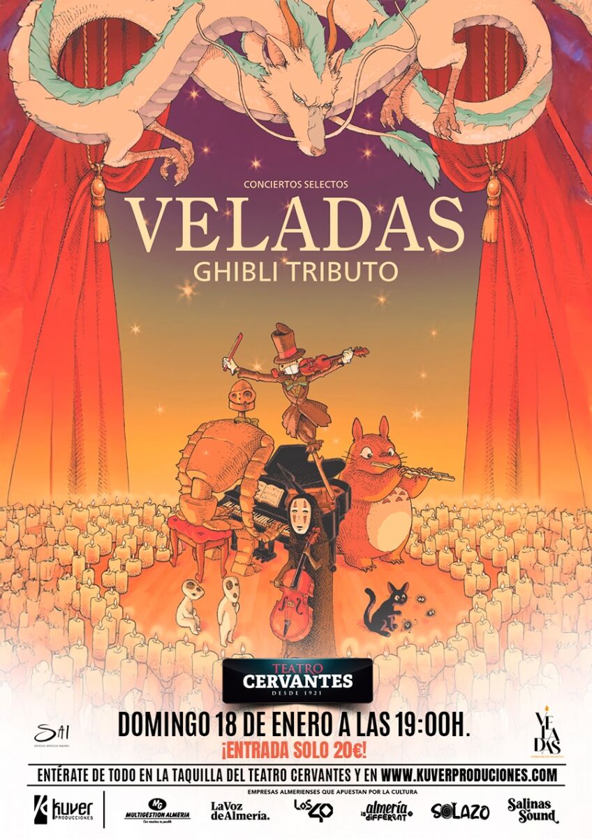 «Veladas Ghibli Tributo», un concierto único en homenaje a las obras más icónicas del legendario estudio de animación japonés. Bajo la mágica atmósfera creada por miles de velas interpretaremos, en directo, las composiciones más queridas de películas como El Viaje de Chihiro, Mi vecino Totoro, La princesa Mononoke, el castillo ambulante y mucho más…