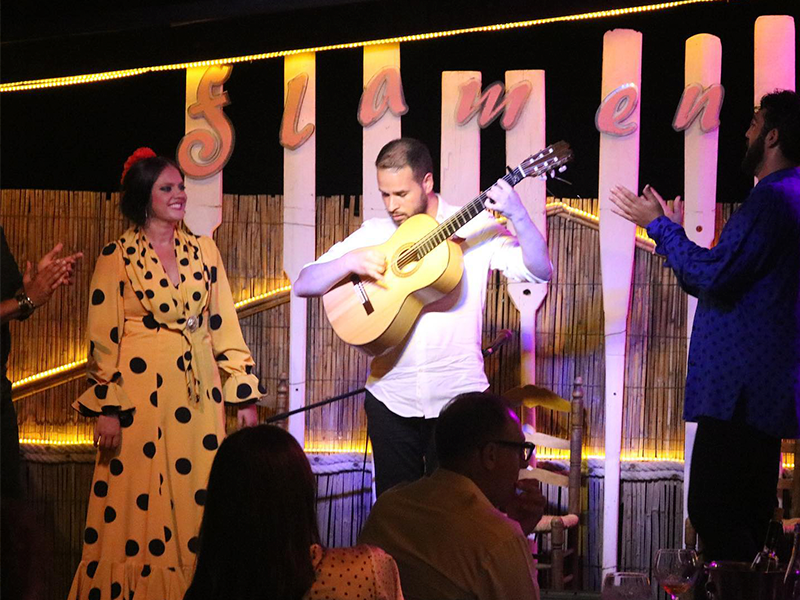 Actuaciones de flamenco y servicio de restauración en su terraza con vistas al mar.