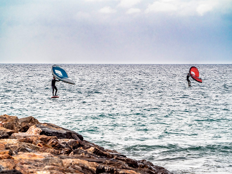 Descubre lo bien que lo puedes pasar cuando el viento sopla, aprendiendo kitesurf - wingfoil y surf, en Costacabana a 5 minutos de Almería, además mejora la técnica de surf en seco con SurfSkates.