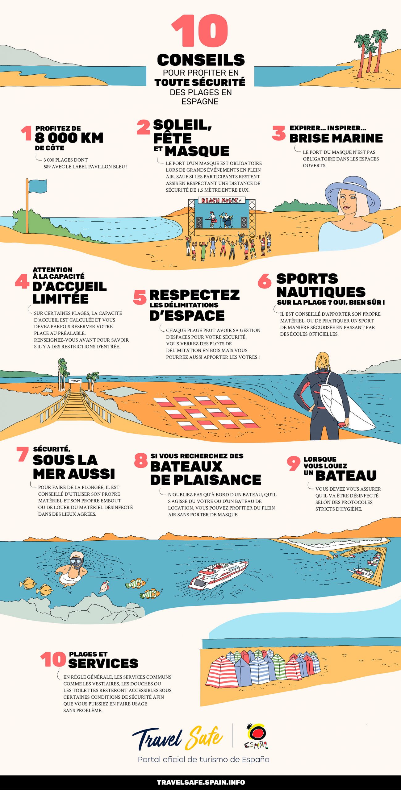 En été comme en hiver, les plages, puisqu’elles sont à l’air libre, sont une option saine. En plus de respecter dans chaque cas les mesures appliquées sur votre lieu de destination, suivez ces conseils pour profiter en toute tranquillité de votre séjour sous le soleil.