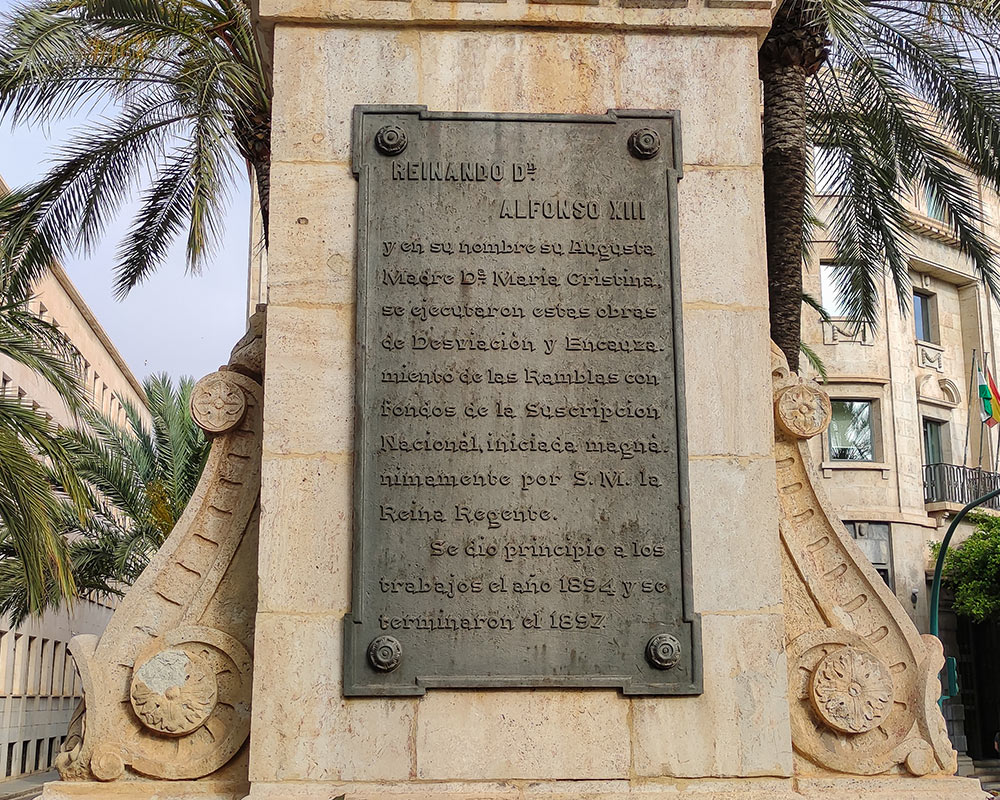 Elle fut construite à la mémoire des vingt victimes (y compris quatre enfants) des inondations de la ville du 11 septembre 1891. Elle montre une femme embrassant ses deux enfants. Le coût fut couvert par une collecte dirigée par la Régente Marie Christine de Habsbourg-Loraine, durant la minorité du roi Alfonso XIII, qui fit canaliser la Rambla, construire des logements pour les victimes et le quartier ou promenade de la Caridad. En signe de reconnaissance, la rue adjacente s’appelle Reina Régente.