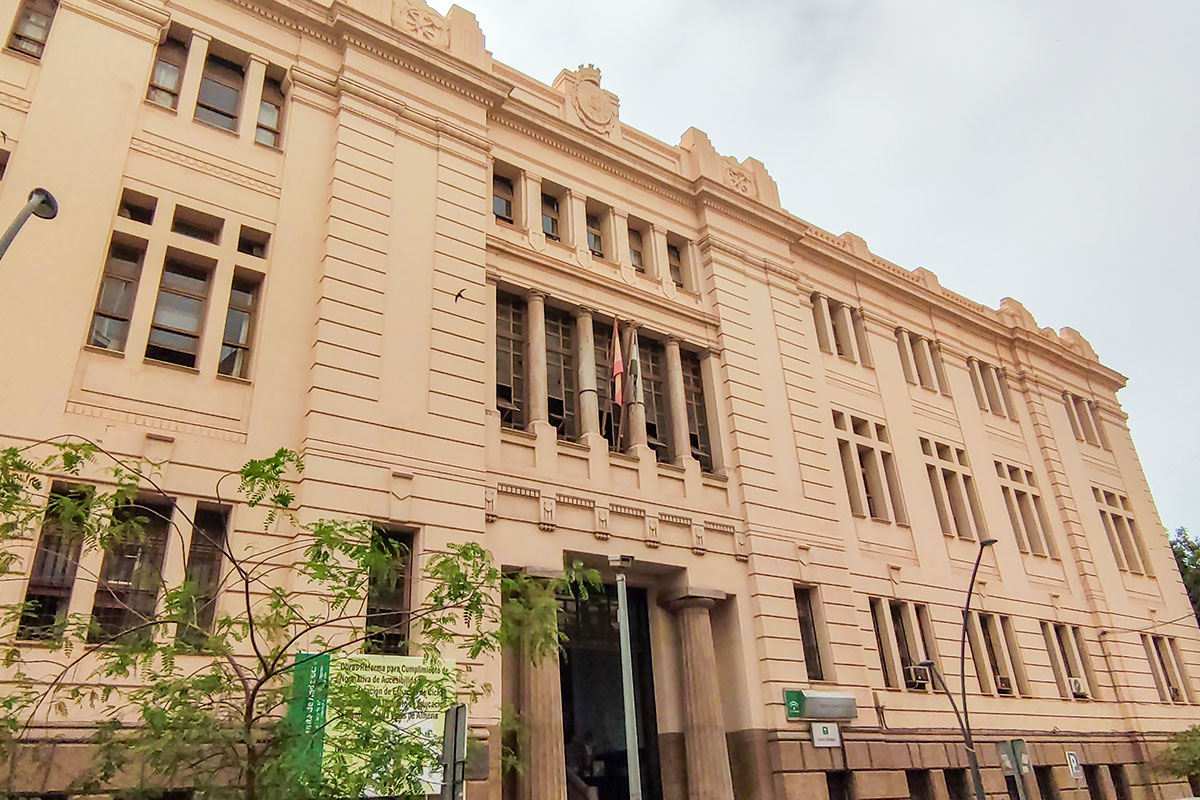 La singularité de la construction, comprise dans le courant historiciste du néo-académisme, est reflétée sur sa façade principale : grande monumentalité, avec emploi d’éléments classiques très caractéristiques : piliers d’ordre colossal, haut soubassement, grand portail, énormes niches et escalier monumental d’accès au premier étage.