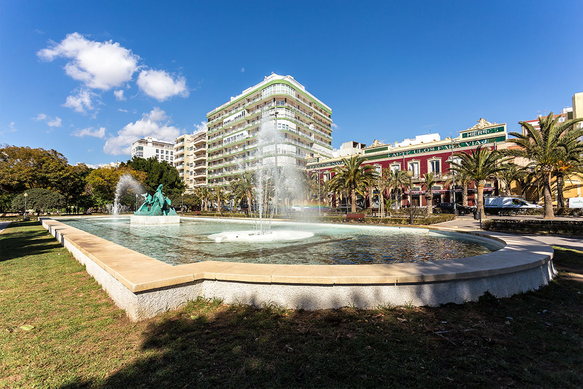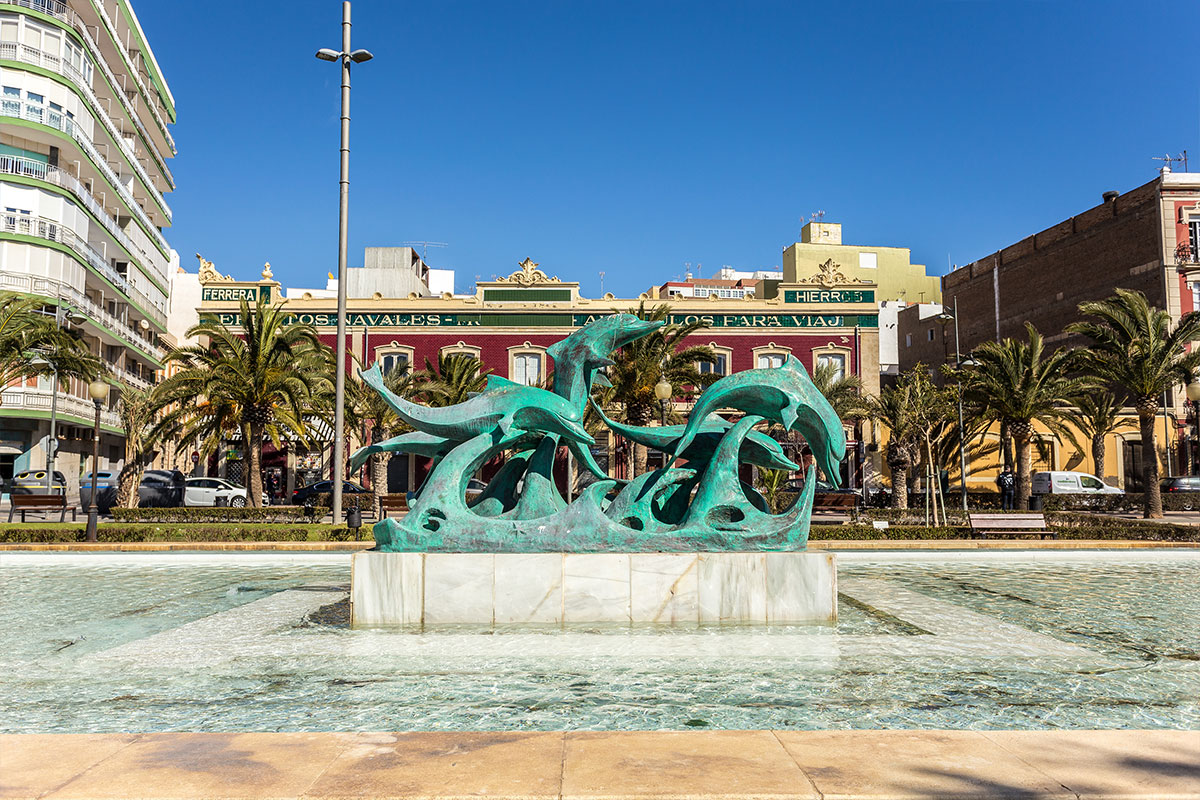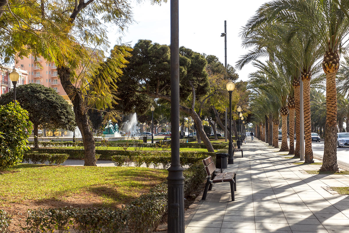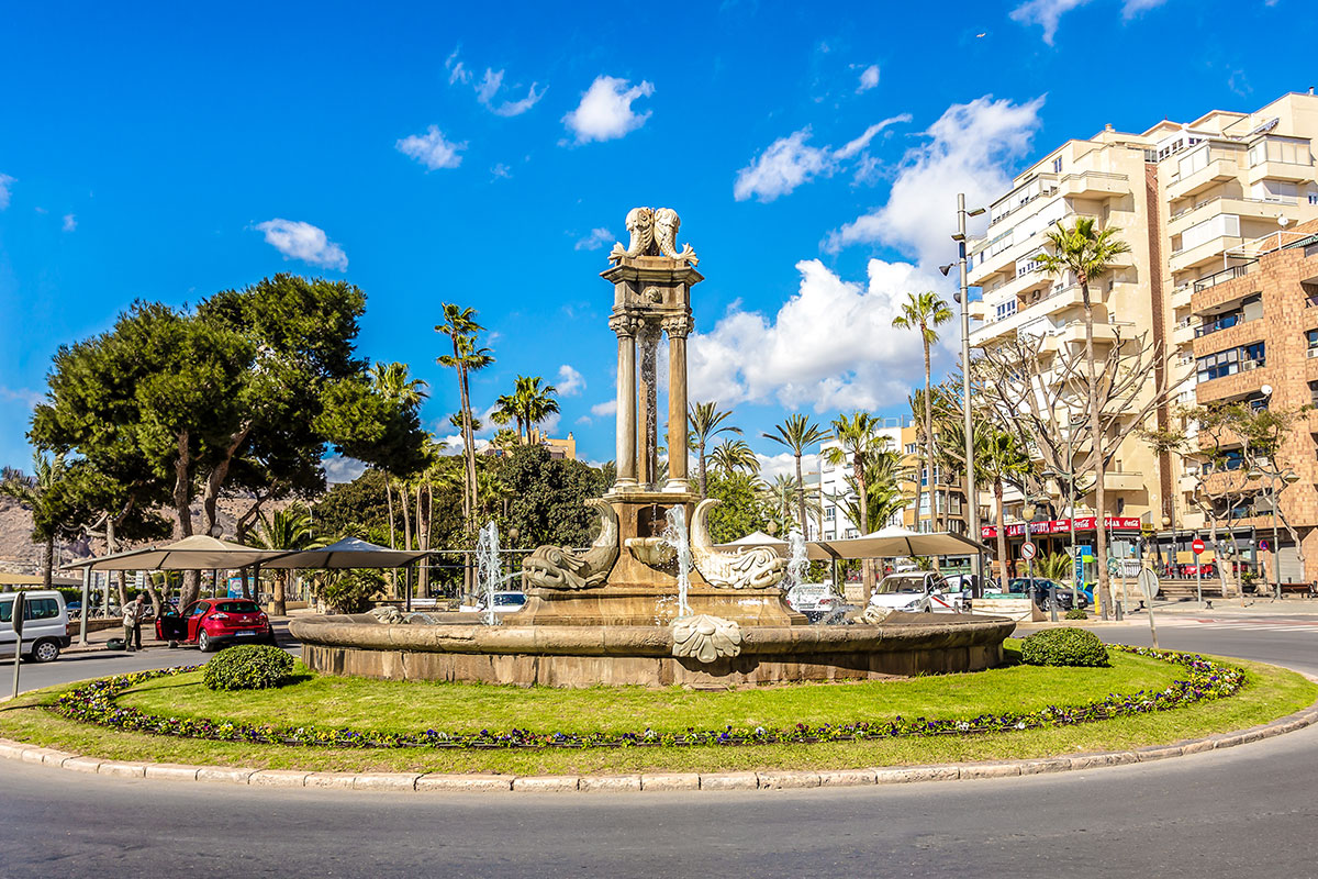 Dans le Parc Nicolás Salmerón, se trouve la Fontaine aux poissons, actuelle Place de la Marina, qui sépare le vieux Parc (à l’ouest) du XIXème siècle et le nouveau Parc, construit en 1940, en honneur du Président de la Première République, M. Nicolás Salmerón, né à Alhama (Almeria). Le Parc fut complètement restauré dans les dernières années du XXème siècle. Sur le tronçon dédié à Nicolás Salmerón se trouvent deux fontaines qui représentent la figure du “Marin” et des “Dauphins”. En face du Parc et du Port, se trouve l’urbanisation récente de la Rambla (XXème siècle et début du XXI) qui confère à la ville un aspect très moderne.