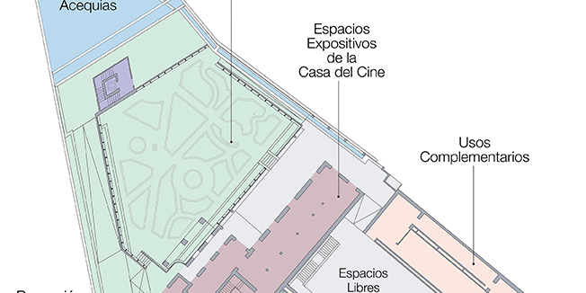 - Zone avec les panneaux expliquant le fonctionnement du tournage à travers ses composants les plus importants : script, interprètes, cascadeurs, extras, réalisateurs…Il y a une thématique scénographique avec des dispositifs audiovisuels et des personnages caractérisés.