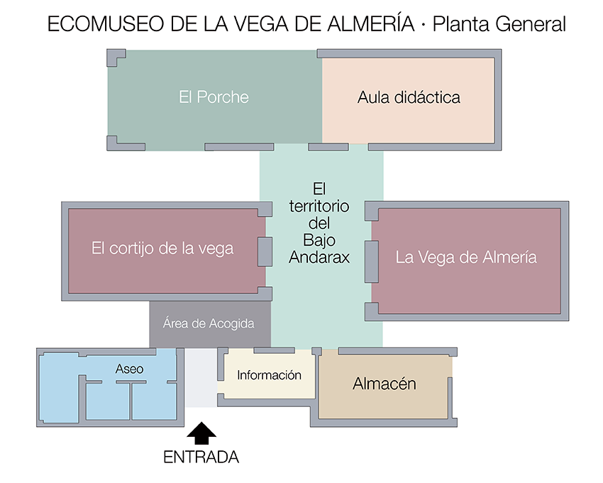 El centro museístico cuenta con tres salas principales: ‘El Cortijo, una forma de vida’; ‘La Vega, una forma de trabajar’ y ‘El territorio del Bajo Andarax’.