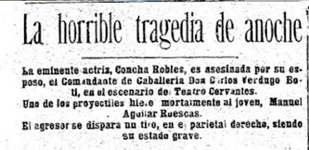 El público escuchó los disparos y vieron a aparecer a Conchita Robles ensangrentada, que se desplomó en el escenario. El público pensaba que lo que sucedía era parte de la trama y aplaudían impresionados por el realismo. Apareció ensangrentado justo después Manuel Aguilar, también herido de muerte gritando “los tiros son verdad”, y cayó moribundo pidiendo un crucifijo en la segunda fila de espectadores, muriendo horas después tras una larga agonía.