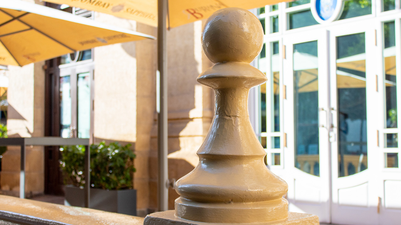 La balaustrada exterior a nivel de calle está decorada con jarrones y peones que no son parte del diseño original, sino que se añadieron en los años 1970 en simbolismo de los campeonatos de ajedrez que se disputaban en el lugar.