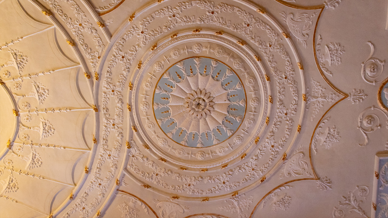 Otra estancia destacada es el salón del primer piso que se divide en dos ámbitos por tres columnas jónicas. De su decoración cabe resaltar las pinturas del techo, relativas a la música y la danza, y los bodegones de flores colocados entre cariátides sobre las puertas. Un magnífico ejemplo de las aspiraciones burguesas almerienses al disfrute del refinamiento que ostentaban otras capitales españolas y europeas.