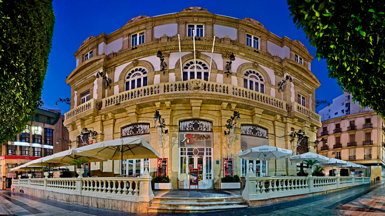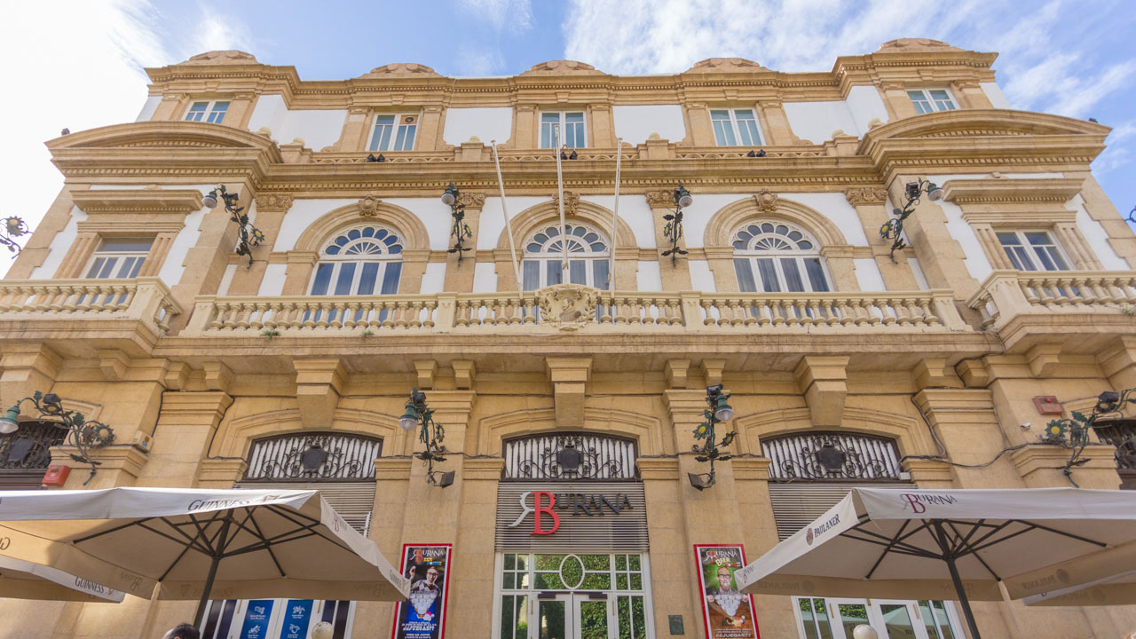 Nos encontramos frente al edificio que es el símbolo cultural de la ciudad: el Teatro Cervantes, declarado Bien de Interés Cultural desde marzo del 2002. Es el teatro más importante de la ciudad. Formando parte del mismo edificio se encuentra el Círculo Mercantil, lugar de reunión de la alta sociedad de la ciudad desde principios del siglo XX, en cuyos salones se realizaban todo tipo de actividades culturales, literarias y exposiciones, así como el baile de carnaval y fin de año.
