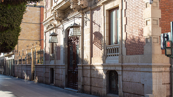El teatro Cervantes ocupa una gran manzana rectancular que asoma por la fachada principal al Paseo. Alberga el mayor teatro de la ciudad y también una sociedad cultural. Información más detallada aquí.