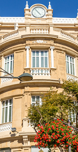 La sede actual de la Delegación de Gobierno de la Junta de Andalucía agrupa dos edificios distintos. El primero de 1.888 de López Rull se levantó como residencia palaciega de Emilio Pérez Ibañez, un influyente almeriense, político y financiero, y acabó siendo durante 80 años el Casino Cultural. Se levantó sobre el tramo bajo del Paseo de Almería que estaba recién abierto, el “boulevard”. (1884). Fue una de las obras más destacadas del momento y, desde luego, la residencia urbana con mayores pretensiones, amplia, elegante y lujosa de las construidas nunca en Almería, siendo uno de los ejemplos arquitectónicos más relevantes de la etapa de la Restauración.