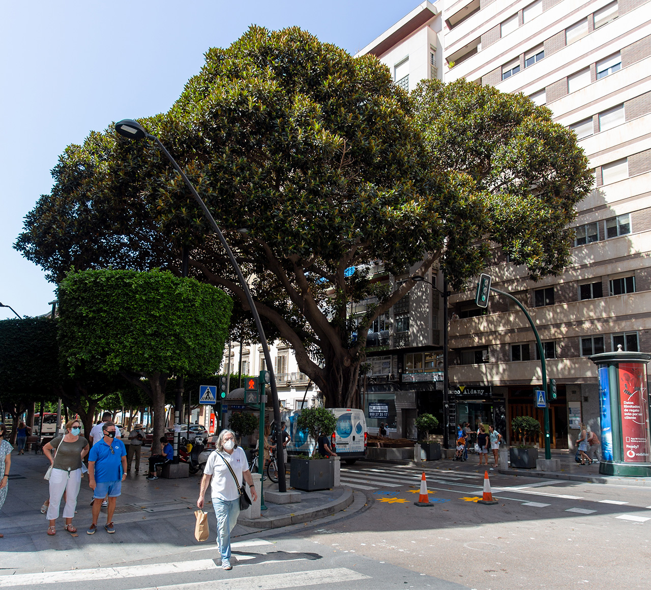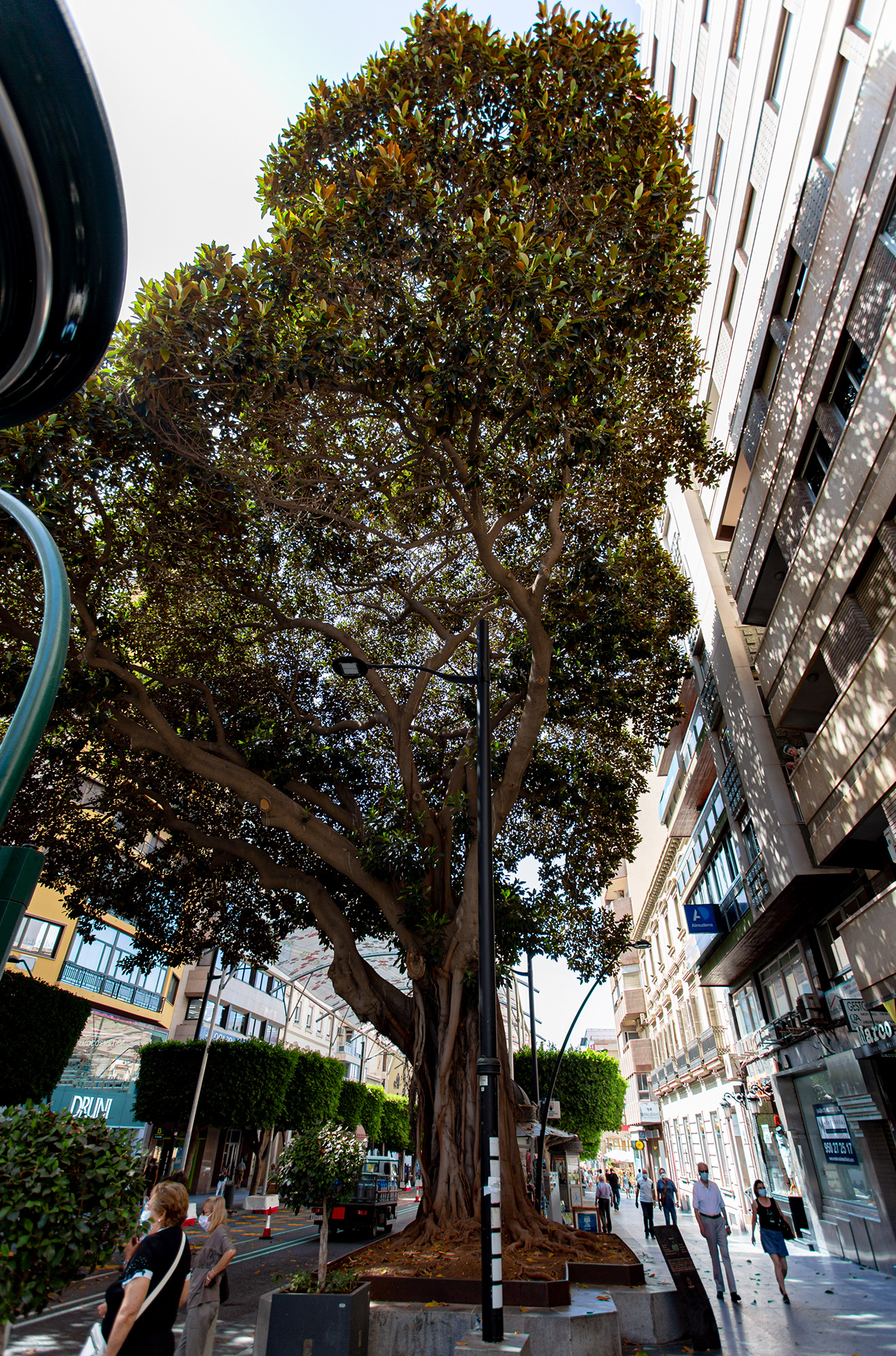 Es sin duda uno de los elementos más representativos de El Paseo de Almería, de su paisaje y de su historia. Se plantó a finales del siglo XIX, por lo que tiene ya más de 120 años de historia.