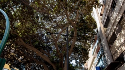 Junto a él, existían dos esbeltas palmeras que superaban la altura del propio ficus. Una de ellas cayó, y la otra, fue talada en 2018 por el peligro de que también cayera.
