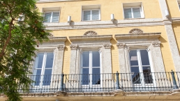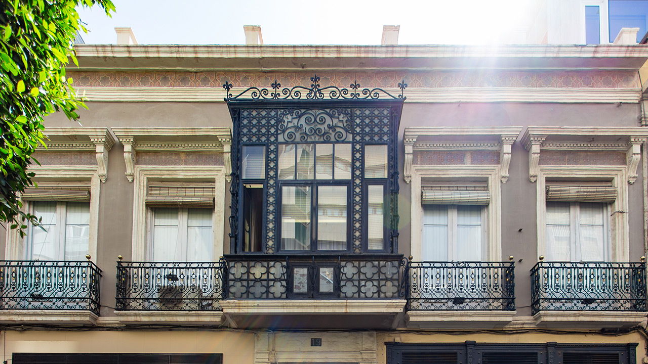 En un plano arquitectónico, en la segunda mitad del siglo XIX aparecen los miradores en los balcones como elementos característicos y representativos de las nuevas viviendas. Con su estructura volada de madera o hierro y cerrados por una cristalera, permiten “mirar sin ser vistos”, un lujo muy de agradecer en esta concurrida y animada arteria. A veces, los miradores de las casas se sobreponen a una fachada historicista anterior e incluyen cristales de colores o carpinterías con detalles modernistas de comienzos del siglo XX. Constituye una herencia del ajimez musulmán, pero ahora se convierte en un elemento de distinción socioeconómica y que puede ser diseñado con posterioridad a la vivienda. Su colocación idónea es en chaflán.