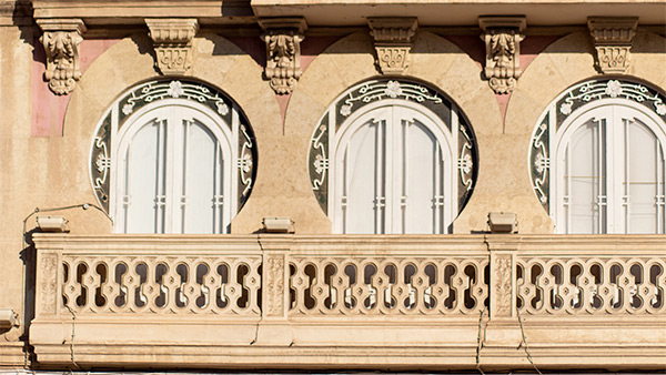 Entre el proyecto del arquitecto, de carácter historicista y la ejecución de la obra, se introdujeron los multiples elementos decorativos del mundo formal del art nouveau. No representa un cambio radical, sino la introducción de elementos sueltos en las viviendas: balcones con formas simbólico-estructurales, barandillas de escaleras, rejas y miradores de fachadas donde se desarrolla una rica vegetación naturista de flores y motivos geométricos.