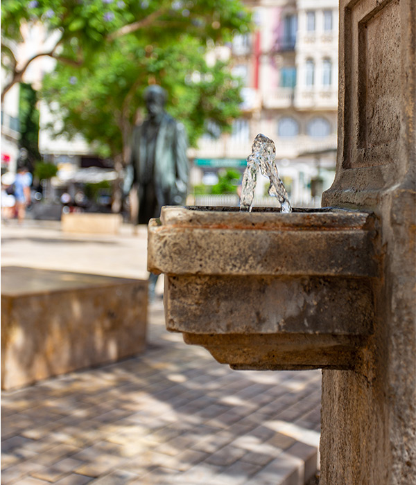 Su ubicación le ha hecho convertirse en el mejor testigo de las idas y venidas de la ciudad en los últimos dos siglos. Esa carga simbólica se fusiona con su sencillez, siendo una fuente con un pilar de forma hexagonal del cual salen tres pequeñas piletas utilizadas como abrevaderos.